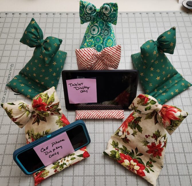 In my home I have a Cell Phone Pillow on my kitchen counter to display my recipe, one on my side table in the family room, another one on my bed side table and of course one at my sewing table. It measures 5.5″x 6″x 8″ (Width, Height, Depth) and weighs an average of 12 ounces.