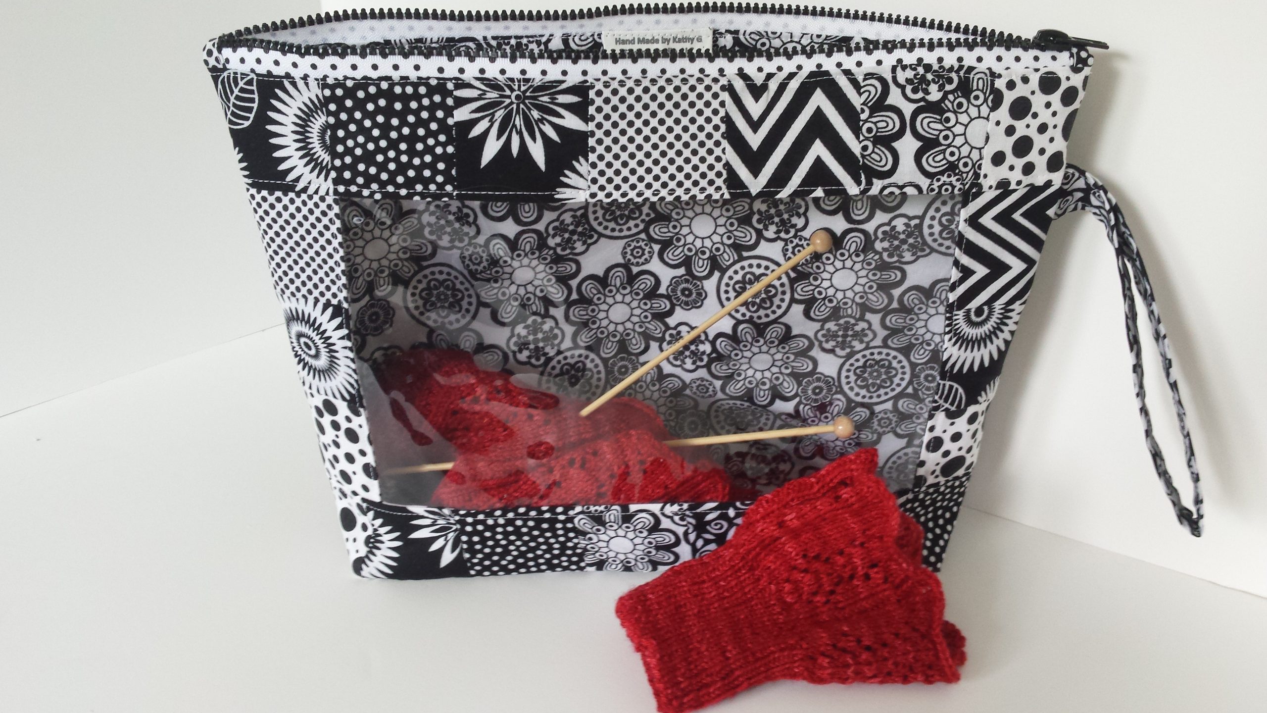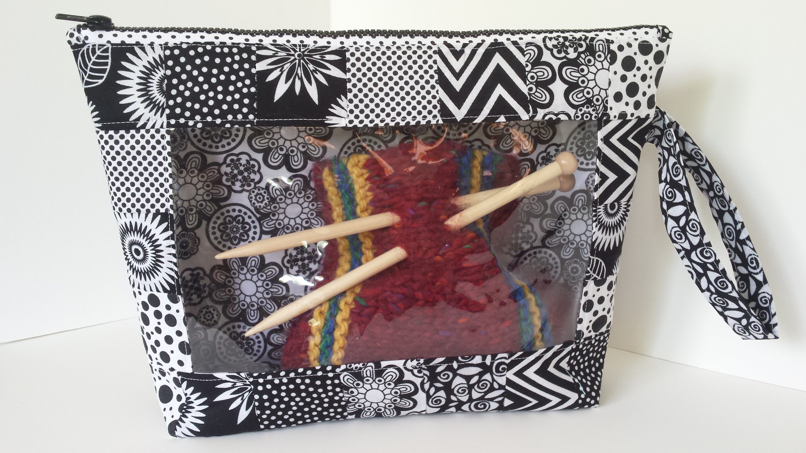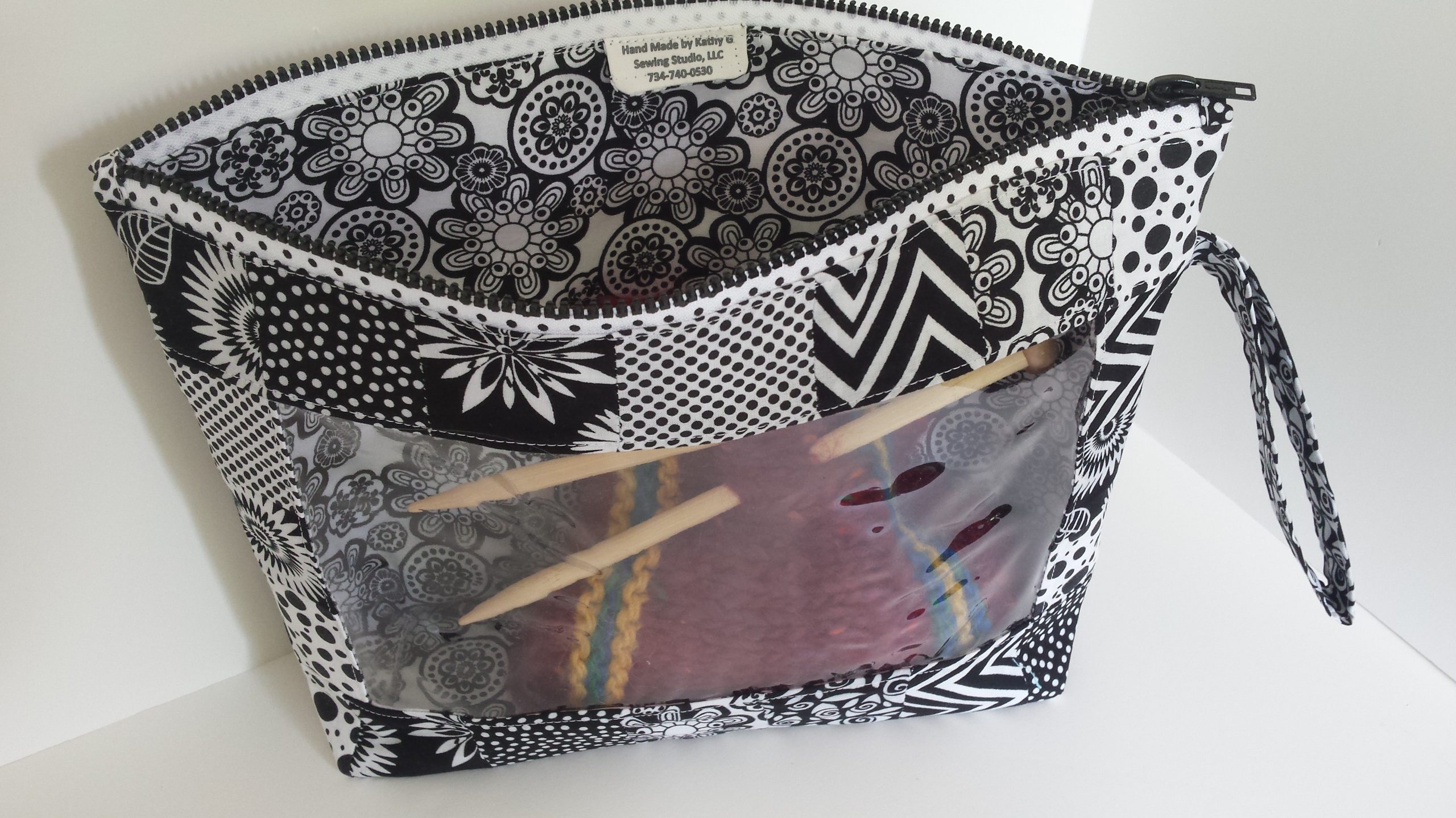 The Zippered Vinyl Pouch measures 10″ x 14″. Great gift idea for cosmetics or as a project bag for knitting.